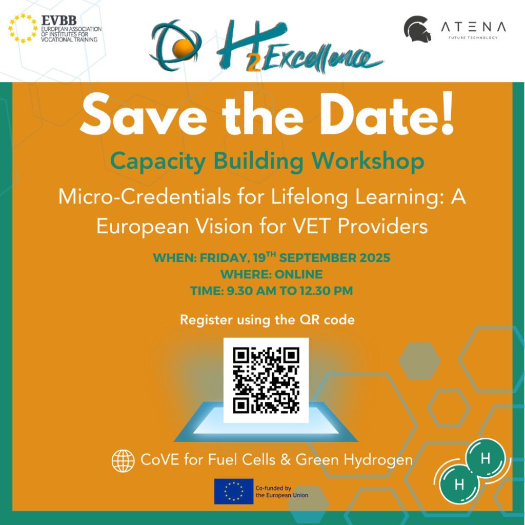 Este workshop interativo reúne líderes do setor da educação, especialistas da indústria do hidrogénio e defensores da inovação, para debater o papel crescente das microcredenciais na Educação e Formação Profissional, em particular na preparação da futura força de trabalho nos setores das energias renováveis e do hidrogénio.